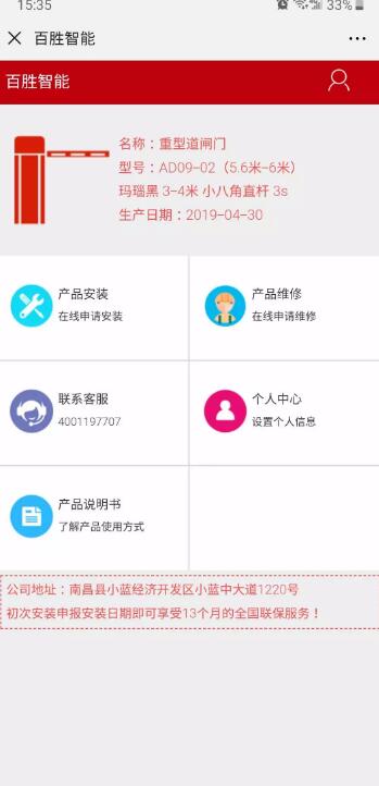 自2019年5月1日起,百勝生產的道閘門、廣告道閘、車牌識別一體機、自動升降地柱等產品上將應用產品二維碼。