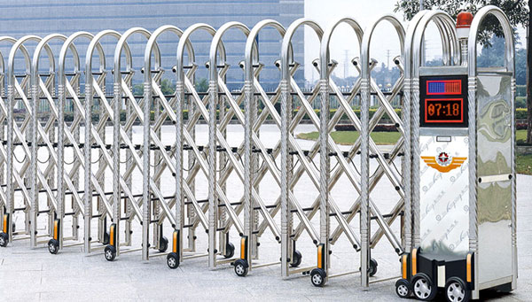 鶴壁伸縮門就是門體可以伸縮自由移動,來控制門洞大小、來控制行人或車輛的攔截和放行的一種門。伸縮門主要由門體、驅(qū)動電機(jī),滑道、控制系統(tǒng)構(gòu)成。門體采用優(yōu)質(zhì)不銹鋼及鋁合金專用型材制作,采用平行四邊形原理鉸接,伸縮靈活行程大。驅(qū)動器采用特種電機(jī)驅(qū)動,蝸桿蝸輪減速,并設(shè)有自動離合或手動離合器,自動離合停電時可自動啟閉,手動離合停電時可手動啟閉,控制系統(tǒng)有控制板,按鈕開關(guān),另可根據(jù)需求配備無線遙控裝置。