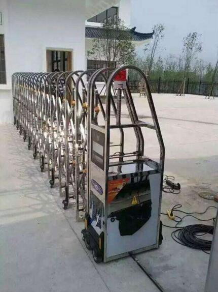 湖州伸縮門門體采用優(yōu)質(zhì)不銹鋼及鋁合金專用型材制作,采用平行四邊形原理鉸接,伸縮靈活行程大,給湖州金蝶軟件有限公司項目不一樣的體驗。
