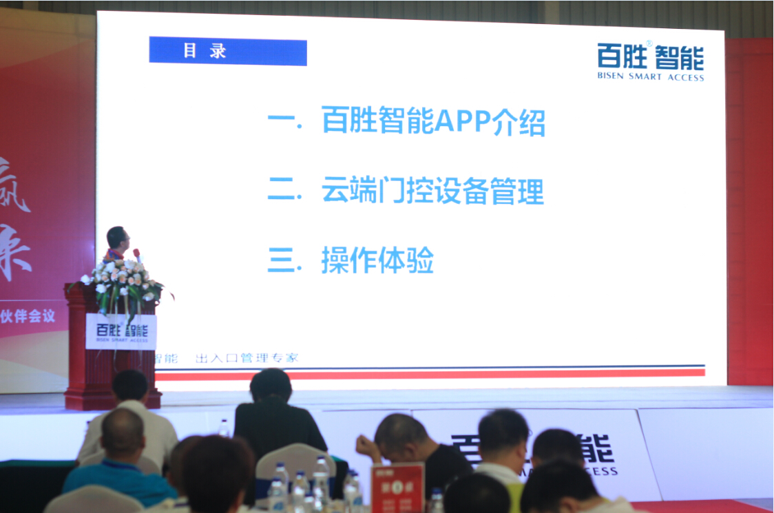 百勝智能佛山營(yíng)銷中心汪志平總經(jīng)理,作為公司代表,在會(huì)場(chǎng)公布了“36V直流無(wú)刷開門機(jī)智能系統(tǒng)合作伙伴計(jì)劃”。