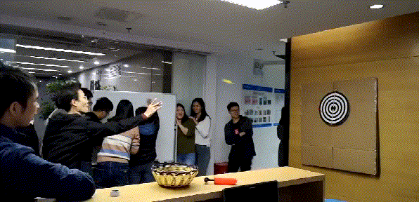投靶擲準:每位參賽者只投一輪,每輪投五鏢,以累加總環(huán)數(shù)大小,排出名次。古有小李飛刀一刀斃命,今有飛鏢高手鏢鏢必中,大家拿著飛鏢紛紛躍躍欲試,以圖命中紅心,成為飛鏢達人。最終總部和廠部兩位大俠分別以36環(huán)、37環(huán)的傲人戰(zhàn)績摘得桂冠。