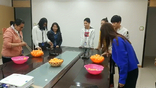 夾兵乓球:這個比賽的規(guī)則很簡單:在1分鐘時間內(nèi)將乒乓球夾進指定的盆里,數(shù)量多者的獲勝。這個活動其實最考驗的參賽者的心態(tài),比賽的要領就是在夾兵乓球不要緊張,要冷靜,手法一定要穩(wěn)。這個項目有優(yōu)勢還是經(jīng)常去吃丸子的同學,平時練就的夾肉丸的技法,終于排上用場了,最后這個比賽排前面還是手法嫻熟的女生們。大家紛紛表示,再也不和她們?nèi)コ耘H饬?,不說別的,就憑夾肉丸子的技術肯定比不上她們。