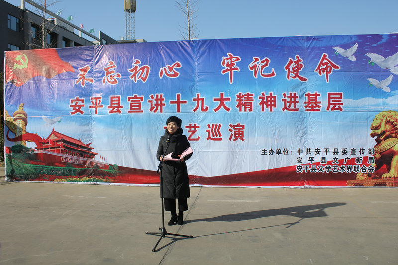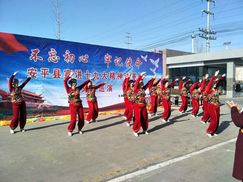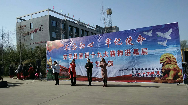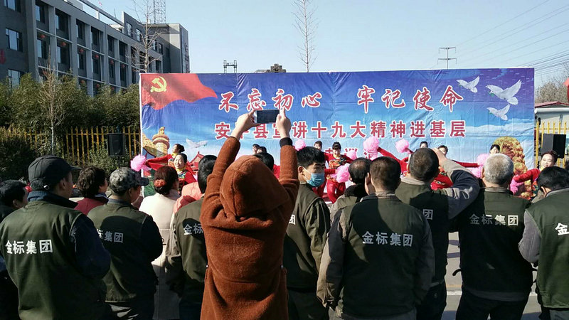 11月23日上午,由縣委宣傳部、縣文廣新局、縣文聯(lián)、金標集團聯(lián)合舉辦的“不忘初心 牢記使命 安平縣宣講十九大精神進基層”文藝巡演第三站走進了河北金標建材科技股份有限公司,通過歌曲、快板、舞蹈等群眾喜聞樂見的形式把黨的十九大精神送到群眾身邊。