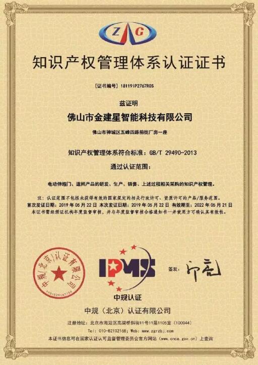 知識產(chǎn)權(quán)管理體系認(rèn)證證書
