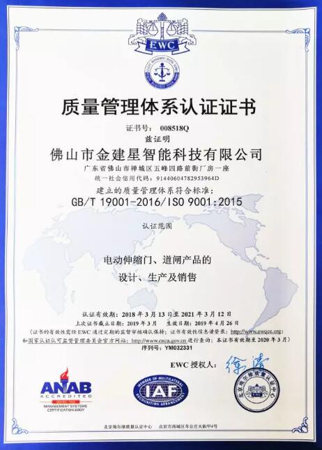 二十多年以來,建星智能秉承"融合、誠信、創(chuàng)新"的成長策略,自電動伸縮門在中華大地誕生,建星人即展開了伸縮門行業(yè)的品牌之路。從第一代簡單的伸縮門生產(chǎn)到擁有18大系列100多款產(chǎn)品,二十年以來,建星人一直走在伸縮門制造行業(yè)的前列,并獲得了中國建筑金屬協(xié)會等多項榮譽認(rèn)可。