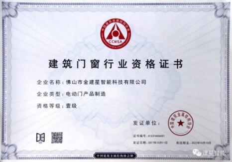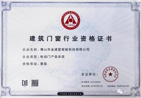 建筑門窗行業(yè)產(chǎn)品制造一級資格證書