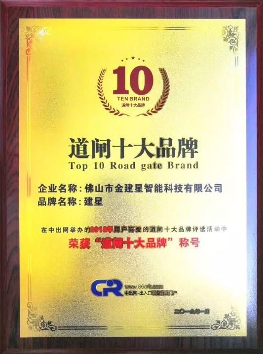 熱烈祝賀建星智能公司,在中出網(wǎng)舉辦的2018年用戶喜愛的道閘十大品牌評選活動中榮獲“道閘十大品牌”稱號。