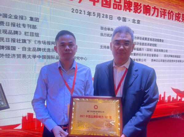 廈門杰田科技有限公司榮膺“2021中國品牌影響力100強”大獎