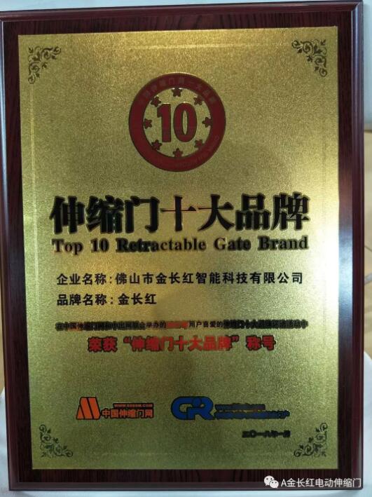 ▲“伸縮門(mén)十大品牌”獎(jiǎng)牌
