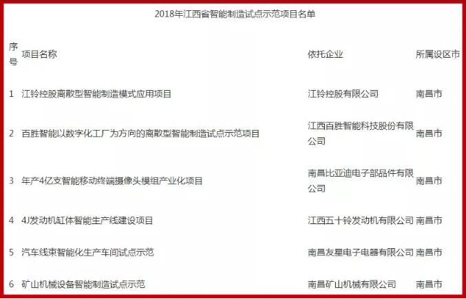 近日,百勝智能“以數(shù)字化工廠為方向的離散型智能制造試點(diǎn)示范項(xiàng)目”入選江西省2018年智能制造試點(diǎn)示范項(xiàng)目。