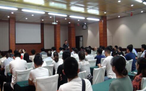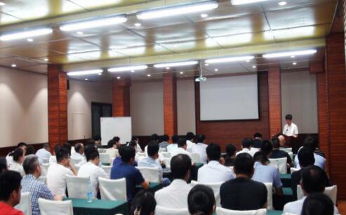 上圖,江蘇國強集團(tuán)黨委副書記袁劍鋒為公司全體黨員上黨課。