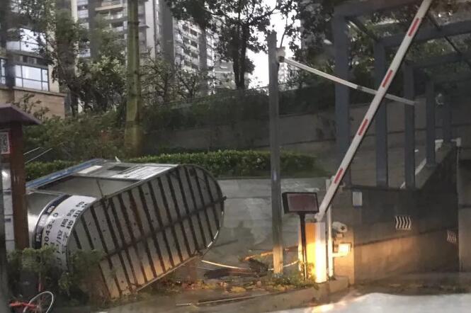 在強大的山竹面前,普通道閘顯得異常脆弱,閘桿被折斷,機箱扭曲變形。