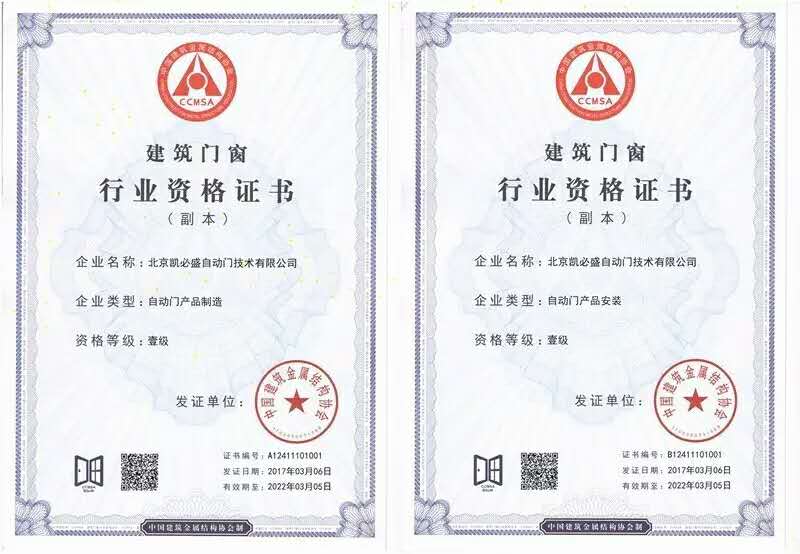 雙一級資質(zhì)是自動門電動門行業(yè)資質(zhì)標準的最高級別,是衡量企業(yè)整體實力的重要指標,對參評企業(yè)的人員素質(zhì)、制造能力、管理質(zhì)量、工程業(yè)績要求都極為嚴苛。但正是這舉步維艱的審核之路,恰恰證明了這一榮譽的彌足珍貴。