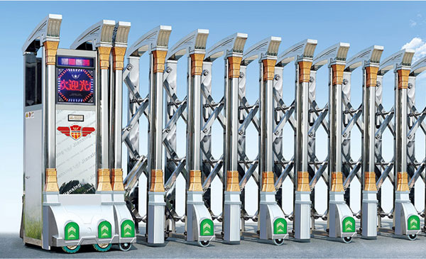 臨汾伸縮門就是門體可以伸縮自由移動,來控制門洞大小、來控制行人或車輛的攔截和放行的一種門。伸縮門主要由門體、驅動電機,滑道、控制系統(tǒng)構成。門體采用優(yōu)質不銹鋼及鋁合金專用型材制作,采用平行四邊形原理鉸接,伸縮靈活行程大。驅動器采用特種電機驅動,蝸桿蝸輪減速,并設有自動離合或手動離合器,自動離合停電時可自動啟閉,手動離合停電時可手動啟閉,控制系統(tǒng)有控制板,按鈕開關,另可根據需求配備無線遙控裝置。