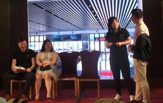 當(dāng)大家還沉浸于上一個(gè)表演情景中時(shí),游戲互動(dòng)分場主持皮總監(jiān)早已按捺不住內(nèi)心的激動(dòng),他迫不及待地上臺找回屬于自己的“場子”,宣讀著游戲規(guī)則和獎(jiǎng)勵(lì),臺下早已蠢蠢欲動(dòng)。在游戲《快樂傳真》環(huán)節(jié)中,三位“隊(duì)長”分別抽到“坐立不安”、“左蹦右跳”和“對牛彈琴”。在眾目期待中,一隊(duì)“隊(duì)長”程總早已進(jìn)入表演情境,他時(shí)而坐下,拍著腿,低頭嘆息,時(shí)而站起來,抬頭仰望,抓耳撈腮,情景演繹一傳二、二傳三,當(dāng)?shù)谖鍌€(gè)人看著前一位隊(duì)員的表演時(shí),愣了半天,才說道——坐井觀天,引得臺下哄然大笑。