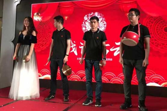研發(fā)部和市場部分別帶來《三句半》表演,朗朗上口的臺詞,間以鑼、鼓、鈸、碰鈴等賦予節(jié)奏感的樂響,將觀眾帶入故事氛圍中。