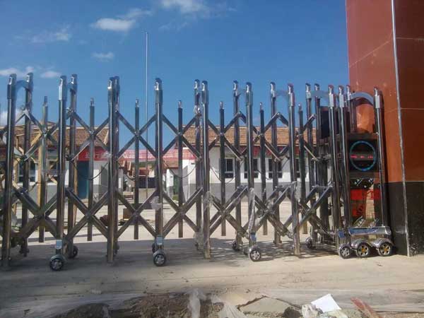 蘭州出安智能電動伸縮門就是門體可以伸縮自由移動,來控制門洞大小、來控制行人或車輛的攔截和放行的一種門。電動伸縮門主要由門體、驅(qū)動電機(jī),滑道、控制系統(tǒng)構(gòu)成。門體采用優(yōu)質(zhì)不銹鋼及鋁合金專用型材制作,采用平行四邊形原理鉸接,伸縮靈活行程大。驅(qū)動器采用特種電機(jī)驅(qū)動,蝸桿蝸輪減速,并設(shè)有自動離合或手動離合器,自動離合停電時可自動啟閉,手動離合停電時可手動啟閉,控制系統(tǒng)有控制板,按鈕開關(guān),另可根據(jù)需求配備無線遙控裝置??膳鋫錆L動顯示屏,顯示300-500字的顯示內(nèi)容。還可配備智能紅外線探頭防碰撞裝置,遇人或異物20-30CM可自動返回運(yùn)行,從而保障車輛及行人的安全。電動伸縮門適用于工礦企業(yè)、機(jī)關(guān)院校、娛樂場所、賓館飯店等公共場合。