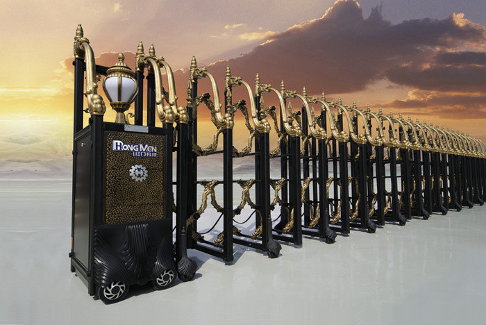 伸縮門就是門體可以伸縮自由移動,來控制門洞大小、來控制行人或車輛的攔截和放行的一種門。伸縮門主要由門體、驅動電機,滑道、控制系統(tǒng)構成。門體采用優(yōu)質不銹鋼及鋁合金專用型材制作,采用平行四邊形原理鉸接,伸縮靈活行程大。驅動器采用特種電機驅動,蝸桿蝸輪減速,并設有自動離合或手動離合器,自動離合停電時可自動啟閉,手動離合停電時可手動啟閉,控制系統(tǒng)有控制板,按鈕開關,另可根據(jù)需求配備無線遙控裝置。