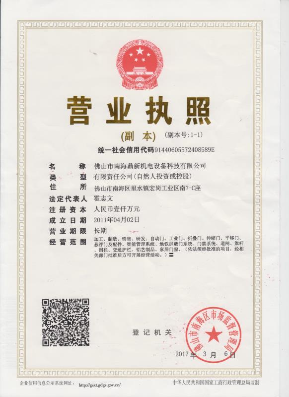 佛山市南海鼎新機電設(shè)備科技有限公司(旗下品牌:南北德信、合一精鋼),是一家集研發(fā)、生產(chǎn)、區(qū)域代理為一體的老牌企業(yè),主導(dǎo)產(chǎn)品為新一代拼裝式懸浮智能折疊平開門、無交叉伸縮架的旋轉(zhuǎn)式伸縮門、拼裝式無軌懸浮平移門、別墅庭院門、精拋光不銹鋼伸縮門、多彩系列鋁合金伸縮門、全拼裝不銹鋼工業(yè)圍欄、陽臺護欄、防護網(wǎng)、材料及配件,在行業(yè)內(nèi)享有卓著的聲譽。