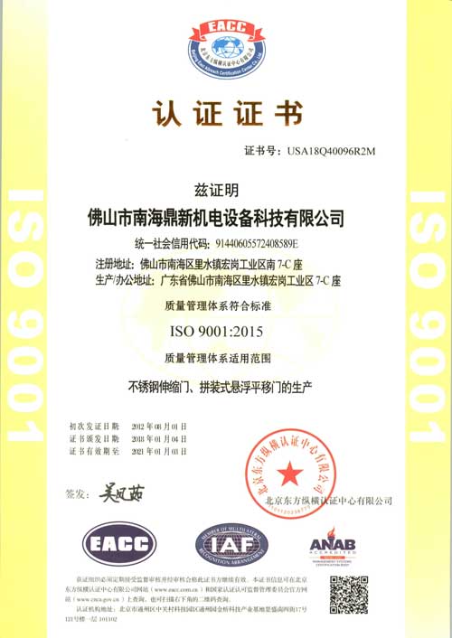 近年來,公司通過了ISO9001:2008質(zhì)量管理體系認證,并榮獲“中國伸縮門行業(yè)十強企業(yè)”稱號。