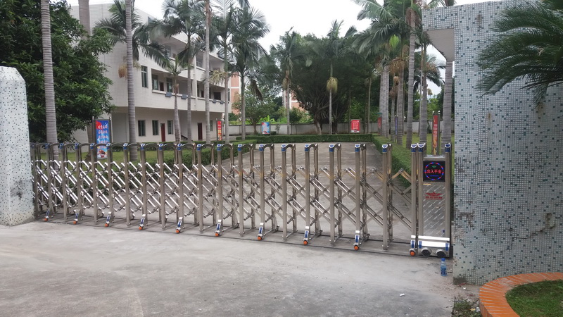 莆田出安智能伸縮門就是門體可以伸縮自由移動,來控制門洞大小、來控制行人或車輛的攔截和放行的一種門。伸縮門主要由門體、驅(qū)動電機,滑道、控制系統(tǒng)構(gòu)成。門體采用優(yōu)質(zhì)不銹鋼及鋁合金專用型材制作,采用平行四邊形原理鉸接,伸縮靈活行程大。驅(qū)動器采用特種電機驅(qū)動,蝸桿蝸輪減速,并設(shè)有自動離合或手動離合器,自動離合停電時可自動啟閉,手動離合停電時可手動啟閉,控制系統(tǒng)有控制板,按鈕開關(guān),另可根據(jù)需求配備無線遙控裝置??膳鋫錆L動顯示屏,顯示300-500字的顯示內(nèi)容。還可配備智能紅外線探頭防碰撞裝置,遇人或異物20-30CM可自動返回運行,從而保障車輛及行人的安全。伸縮門適用于工礦企業(yè)、機關(guān)院校、娛樂場所、賓館飯店等公共場合。