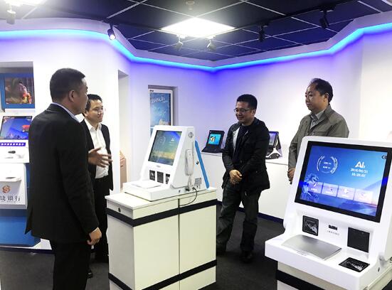 在錢林張董事長的陪同下,領(lǐng)導(dǎo)們分別參觀了產(chǎn)品展示廳和辦公區(qū)域。在產(chǎn)品展廳中,錢林員工熱情細(xì)致地向領(lǐng)導(dǎo)們講解了,智能自助終端在行業(yè)的重要意義以及各產(chǎn)品的功能特點(diǎn),并親身體驗(yàn)了智能訪客機(jī)、自助售取票機(jī)、入住機(jī)、點(diǎn)餐機(jī)等不同產(chǎn)品,不僅感受到產(chǎn)品的強(qiáng)大功能,也體驗(yàn)到科技為人類生活所帶來的便捷。