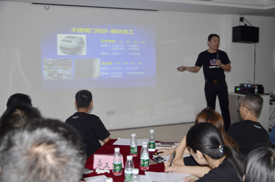 李總從產(chǎn)品的選材、工藝技能開始培訓,入戶門的每一個知識細節(jié)講述可謂入木三分。細致的知識鋪排專業(yè)性強,但又通俗易懂。課堂氣氛群情激昂,學員興奮不已,開心學習,快樂成長。