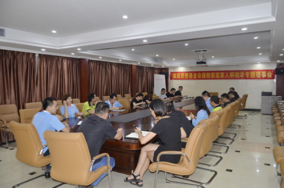 8月5日,榮高慈善基金會理事會成員集中開會進行愛心捐贈儀式的部署。這次捐款是針對榮高家人解曉華的一次愛心捐款。