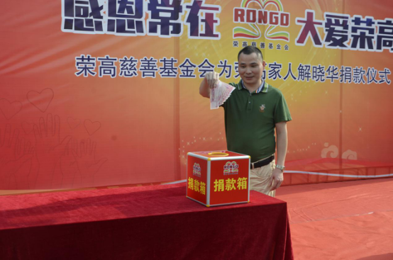 8時15分,榮高智能門窗董事長,榮高慈善基金會會長黃榮高先生為愛感召!黃董表示,我們應(yīng)該伸出友愛之手、援助之手,獻上一份愛心,幫助解曉華渡過難關(guān)。