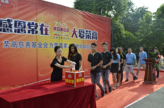 榮高慈善基金會是由榮高智能門窗組辦的一個愛心基金會,組織這個愛心基金會目的在于弘揚中華民族扶弱濟貧、扶危救急、共襄公益,幫助社會有需要的人。董事長黃榮高先生宣揚“整個企業(yè)一起做慈善”的倡議,帶領(lǐng)榮高人進行愛心捐贈。