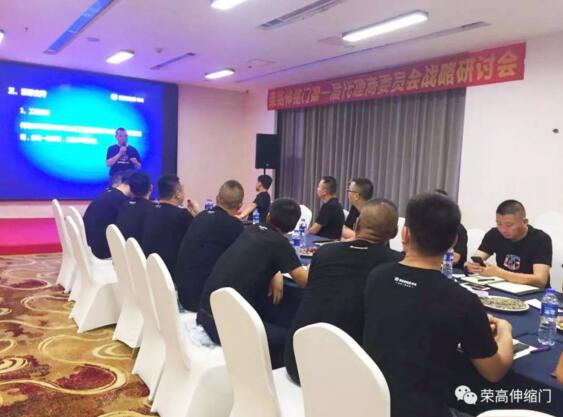 榮高伸縮門首屆代理商委員會戰(zhàn)略研討會于成都熱烈召開,榮高智能門窗董事長黃榮高先生,總經(jīng)理黃榮志先生,代理商委員會會長楊永先生、代理商委員等近20人出席研討會議。