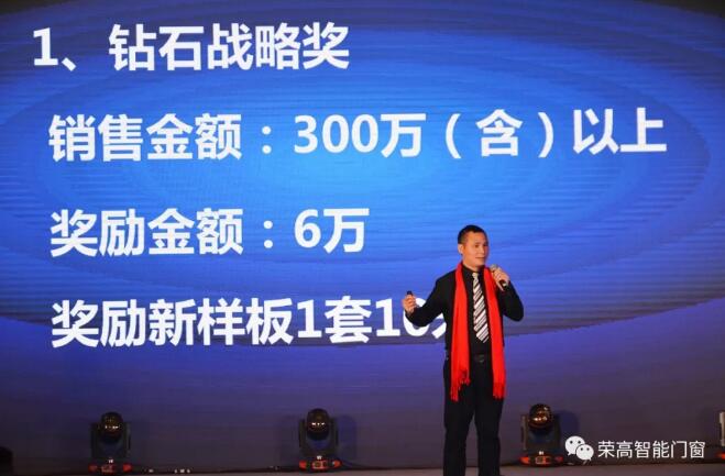 8時,榮高智能門窗2018戰(zhàn)略規(guī)劃暨新品發(fā)布會正式開始,榮高智能門窗董事長黃榮高先生在2018戰(zhàn)略規(guī)劃中畫龍點睛,繪制新藍(lán)圖,打造全新的2018!提出了“新營銷、新服務(wù)、新品質(zhì)”的三新模式。對戰(zhàn)略合作伙伴提供多種模式的扶持政策。