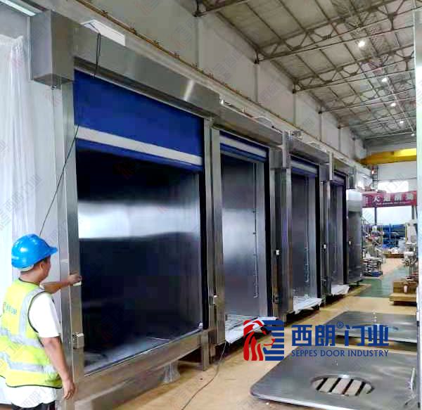 1、快速隔離:不銹鋼快速門開啟速度達1-2m/s,速度是普通卷簾門的10倍,并且可以隔音保溫、防塵防蟲。