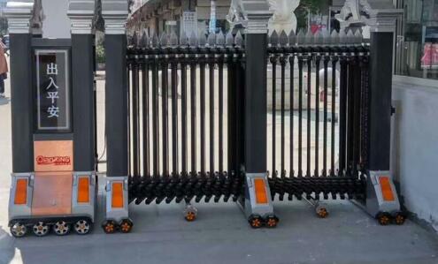 石家莊電動(dòng)伸縮門(mén)的驅(qū)動(dòng)器采用特種電機(jī)驅(qū)動(dòng),蝸桿蝸輪減速,并配有手動(dòng)離合器,停電時(shí)可手動(dòng)啟閉,電動(dòng)伸縮門(mén)的控制系統(tǒng)有控制板,按鈕開(kāi)關(guān),另可根據(jù)用戶需求配備無(wú)線遙控裝置。電動(dòng)伸縮門(mén)所采用的電機(jī)系特殊的專用渦輪蝸桿式電機(jī),因?yàn)槠鋫鲃?dòng)原理特殊性,穩(wěn)定性高,輸出力矩大、噪音小,速度適中。門(mén)體整體為金屬結(jié)構(gòu),按材質(zhì)又分為不銹鋼門(mén)體、鋁合金門(mén)體、壓鑄鋁門(mén)體。2、機(jī)頭:由驅(qū)動(dòng)器和電氣部分組成,它固定在門(mén)體的一端,帶動(dòng)門(mén)體伸縮運(yùn)動(dòng),與門(mén)體配套使用。驅(qū)動(dòng)器分普通型和機(jī)器人型。3、控制器:由控制盒、臺(tái)式控制器及手柄遙控器組成。1)、控制盒:固定在機(jī)頭內(nèi),由它接收控制器發(fā)出的指令控制門(mén)體的運(yùn)行。2)、臺(tái)式控制器:主要由值班人員在值班室內(nèi)使用。3)、手柄遙控器:主要配備車輛使用,可在機(jī)頭周圍10-30米內(nèi)(根據(jù)現(xiàn)場(chǎng)的無(wú)線電通訊環(huán)境而定)活動(dòng)控制大門(mén)的開(kāi)、關(guān)。