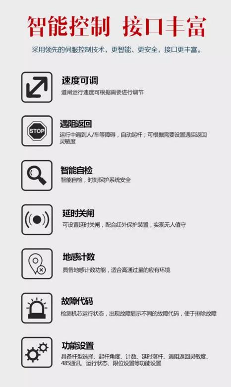高速起桿,最快0.6s起桿;慢落桿,人性化安全設(shè)計(jì);