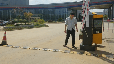 ▲百勝車牌識別道閘一體機安裝79G雷達防砸車效果