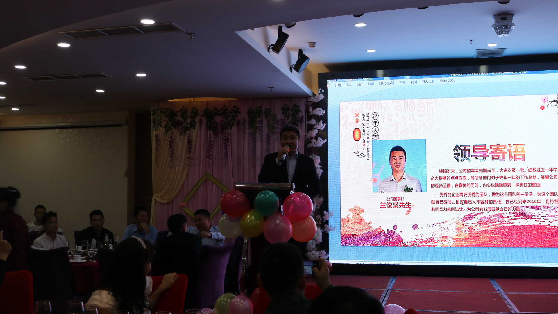 蘭總致辭:轉(zhuǎn)眼歲末,公司的年會如期而至,大家歡聚一堂,細數(shù)過去一年中風雨同舟奮力拼搏的點點滴滴,聆聽各部門對于去年一年的工作總結(jié),展望公司未來發(fā)展的蓬勃藍圖,在喜悅的同時,內(nèi)心也隱隱感到一種責任的重量。