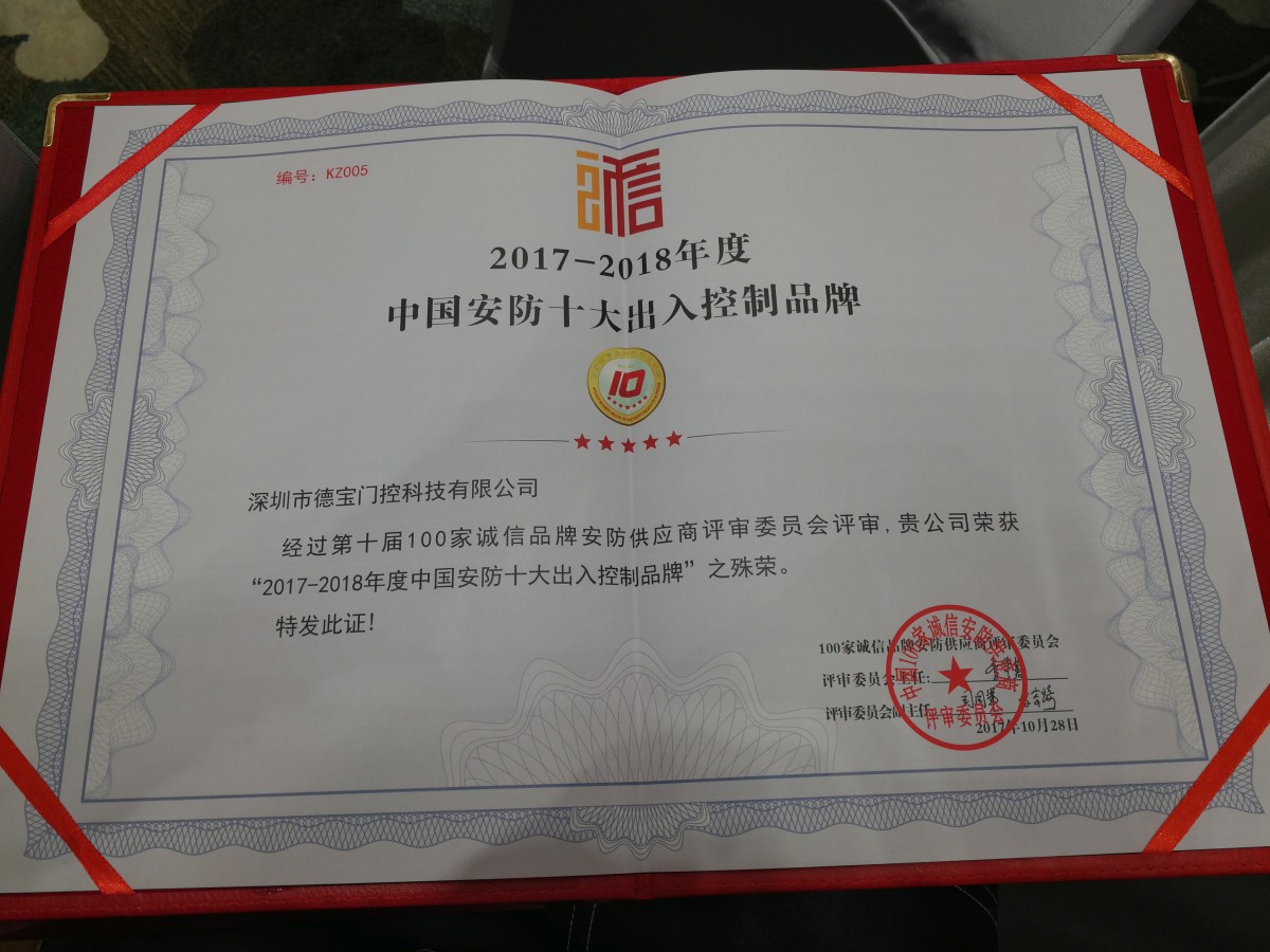 日前,經(jīng)過(guò)第十屆100家誠(chéng)信品牌安防供應(yīng)商評(píng)審委員會(huì)嚴(yán)格評(píng)審,深圳德寶門控科技有限公司從眾多出入控制企業(yè)中脫穎而出,榮獲“2017-2018中國(guó)安防十大出入控制品牌”。這也是德寶門控自去年獲得“2016-2017年度中國(guó)安防十大誠(chéng)信出入控制品牌”以來(lái)繼續(xù)蟬聯(lián)這一殊榮,德寶門控的口碑和實(shí)力再一次得到行業(yè)及客戶認(rèn)可。