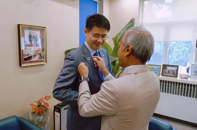 會談后,常啟德先生向孔彥康總經(jīng)理授予可持續(xù)發(fā)展目標(biāo)胸章,以示對星星充電在可持續(xù)發(fā)展領(lǐng)域貢獻(xiàn)的感謝。常啟德先生指出,企業(yè)是實現(xiàn)聯(lián)合國2030年可持續(xù)發(fā)展目標(biāo)的關(guān)鍵力量,星星充電是推動全球綠色轉(zhuǎn)型不可或缺的伙伴??讖┛悼偨?jīng)理對此表示感謝,并承諾星星充電將持續(xù)為此目標(biāo)貢獻(xiàn)中國智慧與企業(yè)力量。