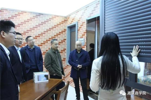 各領導參觀了湘聯(lián)集團體驗館的六大板塊:“序廳-模擬陽光房-榮譽館-工業(yè)物流區(qū)-金融安防區(qū)-智能家居”,展廳講解員現(xiàn)場展示了遮陽產(chǎn)品的強大功能,讓現(xiàn)場所有人深切感受到遮陽的現(xiàn)代智能性。