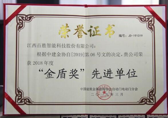 本次會(huì)議,江西百勝智能科技股份有限公司因杰出的行業(yè)貢獻(xiàn)、突出的安全電壓標(biāo)準(zhǔn)化工作而榮獲:《安全電壓開(kāi)門(mén)機(jī)》團(tuán)體標(biāo)準(zhǔn)主編單位、《戶(hù)外電動(dòng)門(mén)安全要求》團(tuán)體標(biāo)準(zhǔn)主編單位、2018年度全國(guó)自動(dòng)門(mén)電動(dòng)門(mén)行業(yè)金盾獎(jiǎng)。