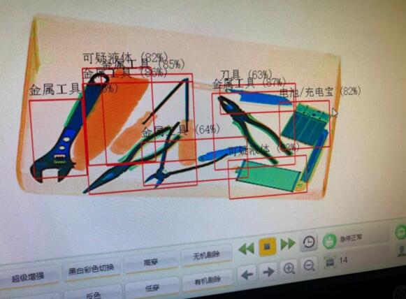 中控智慧的安檢智能輔助識別系統(tǒng)利用豐富的學習樣本和深度學習神經(jīng)網(wǎng)絡,通過計算機提煉樣本特征,識別準確、泛化能力強,實現(xiàn)高質(zhì)量學習和高實時性識別。經(jīng)過大數(shù)據(jù)采集及學習,中控智慧的智能識別系統(tǒng)可識別出瓶狀物體(如液體)、通訊設備(如手機)、鋰電池(如充電寶)、金屬(如工具、雨傘、刀具、鑰匙)、化妝品類、粉末物體、筆記本電腦、鞋類、硬幣、電路板等10個大類的日常用品。