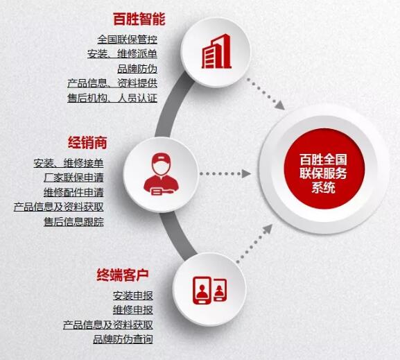 百勝全國聯(lián)保服務系統(tǒng)的應用,將為終端客戶、經(jīng)銷商提供一個高效統(tǒng)一的售后服務管理平臺和內部服務質量跟蹤的信息渠道。