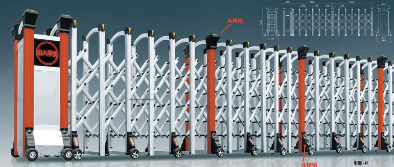 昭通伸縮門就是門體可以伸縮自由移動,來控制門洞大小、來控制行人或車輛的攔截和放行的一種門。伸縮門主要由門體、驅(qū)動電機(jī),滑道、控制系統(tǒng)構(gòu)成。門體采用優(yōu)質(zhì)不銹鋼及鋁合金專用型材制作,采用平行四邊形原理鉸接,伸縮靈活行程大。驅(qū)動器采用特種電機(jī)驅(qū)動,蝸桿蝸輪減速,并設(shè)有自動離合或手動離合器,自動離合停電時可自動啟閉,手動離合停電時可手動啟閉,控制系統(tǒng)有控制板,按鈕開關(guān),另可根據(jù)需求配備無線遙控裝置。