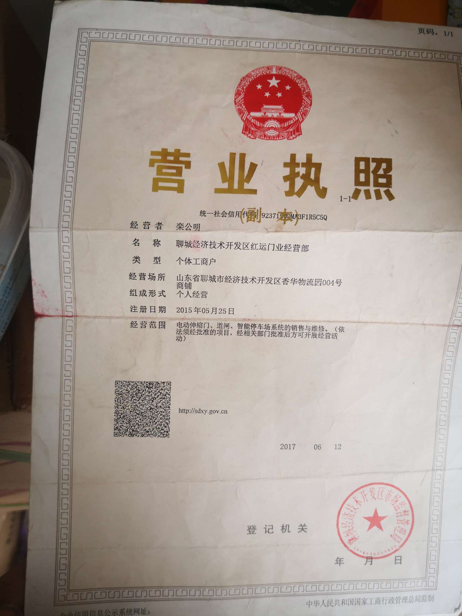 聊城經(jīng)濟技術開發(fā)區(qū)紅運門業(yè)經(jīng)營部成立于2015年05月25日,注冊地位于山東省聊城市經(jīng)濟技術開發(fā)區(qū)香華物流園004號商鋪,法人代表為欒公明。經(jīng)營范圍包括電動伸縮門、道閘、智能停車場系統(tǒng)的銷售與維修。